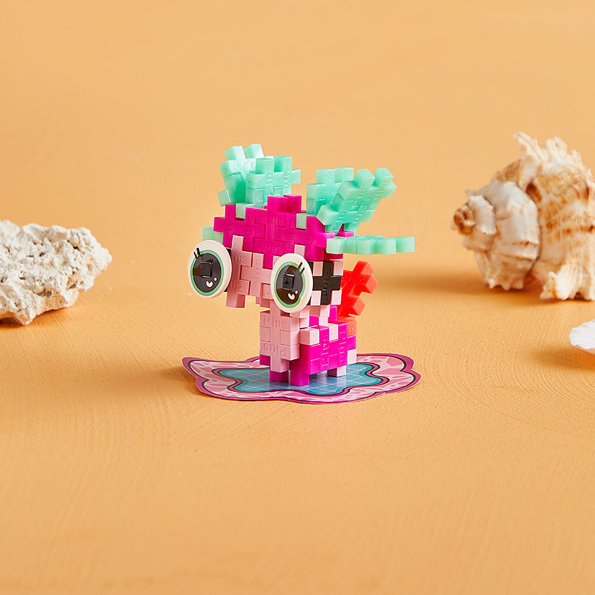 A sweet pink axolotl brings creativity to life in this Pet Packet. With buildable pieces and fun sticker eyes, kids can customize their pet again and again. Also includes a mat to cut out and display your pet, along with a collectible sticker.